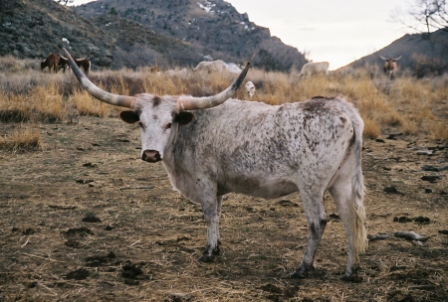 What a cow going to our donor program after she has her Smok'N calf over 72" t2t and 94" th. She is the dam of Grill who is also in our donor program.Thick horn all the way out to the tips.